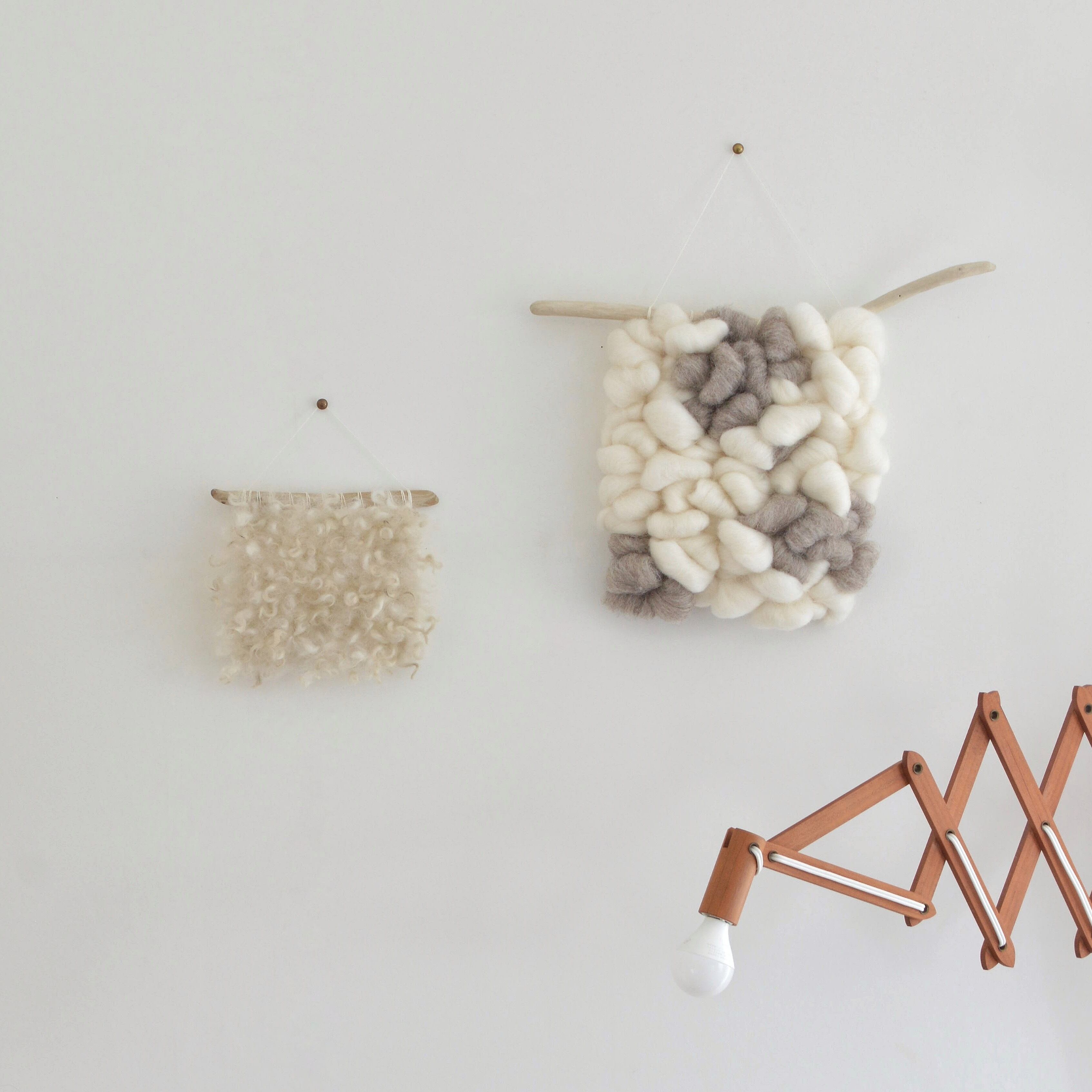 羊毛 羊毛タペストリー 流木 ウォールハンギング