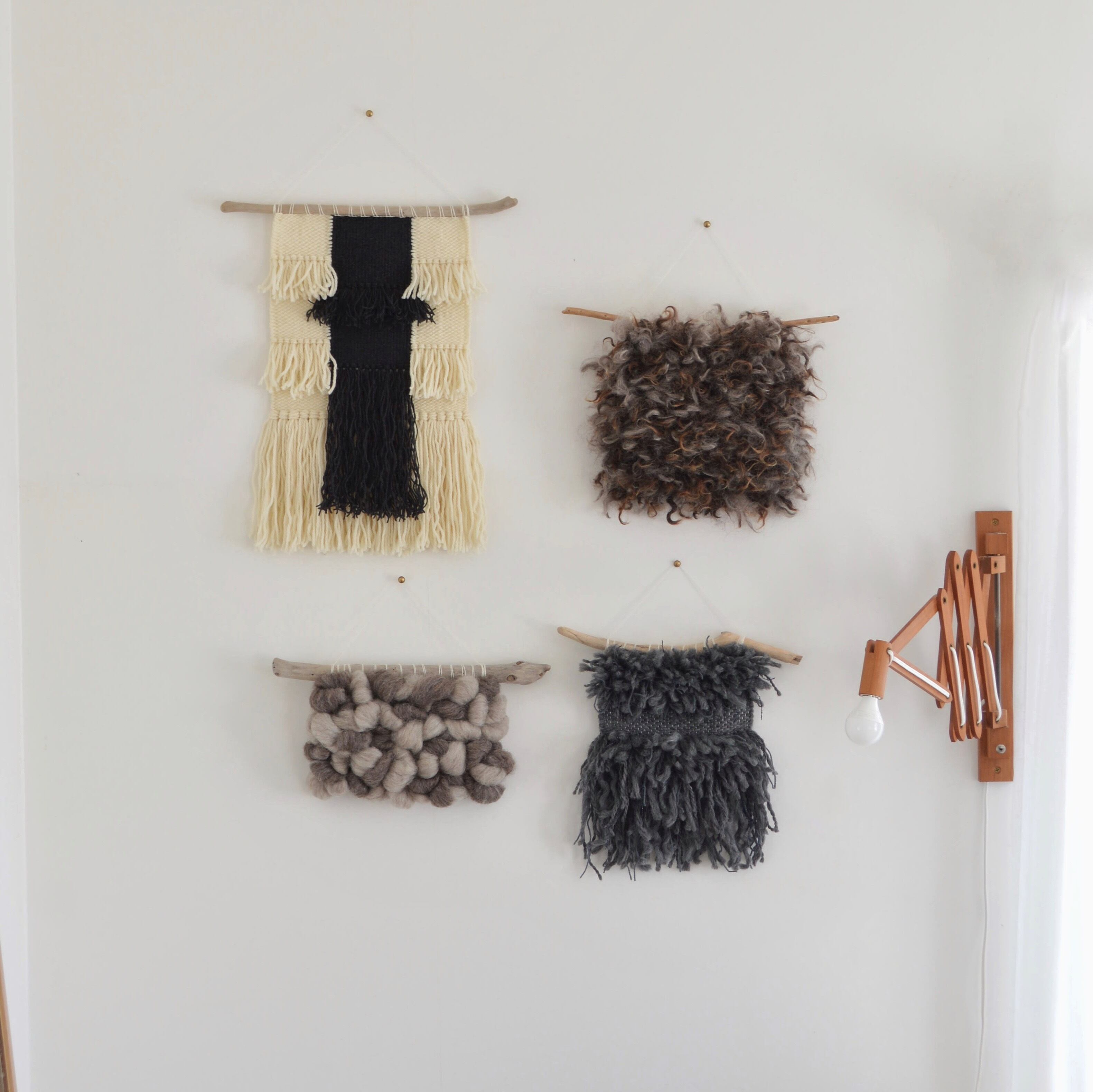 羊毛 羊毛タペストリー 流木 ウォールハンギング