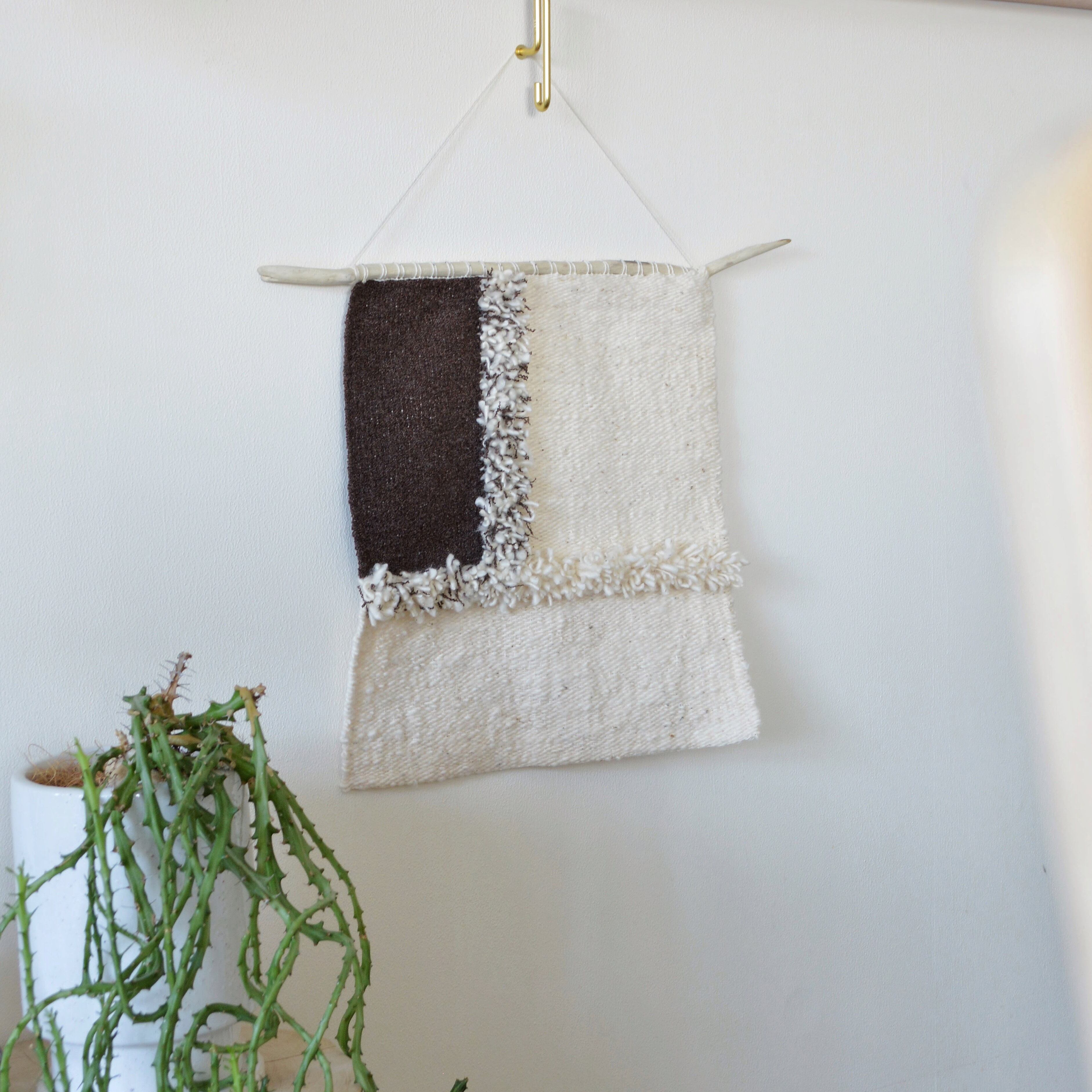 羊毛 羊毛タペストリー 流木 ウォールハンギング