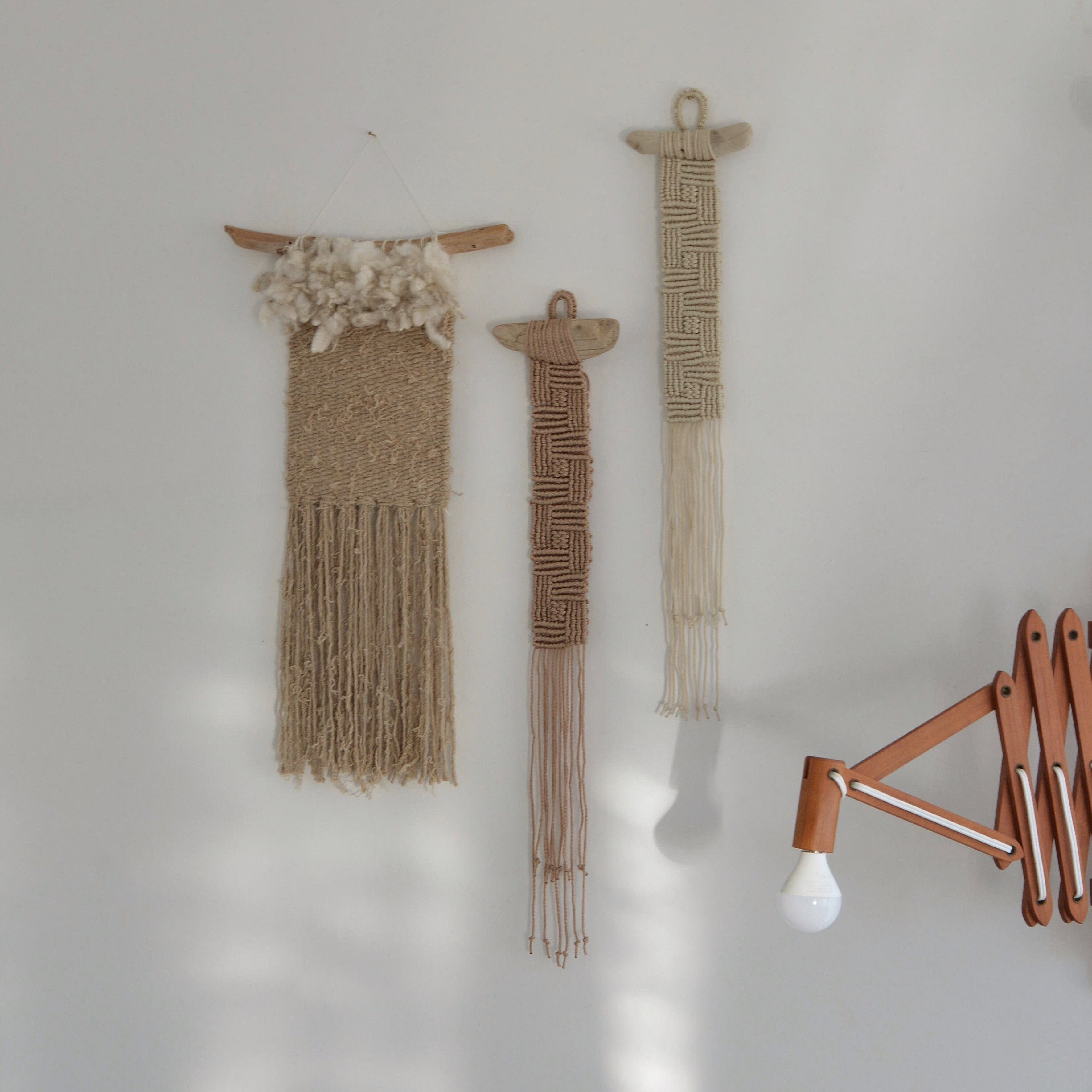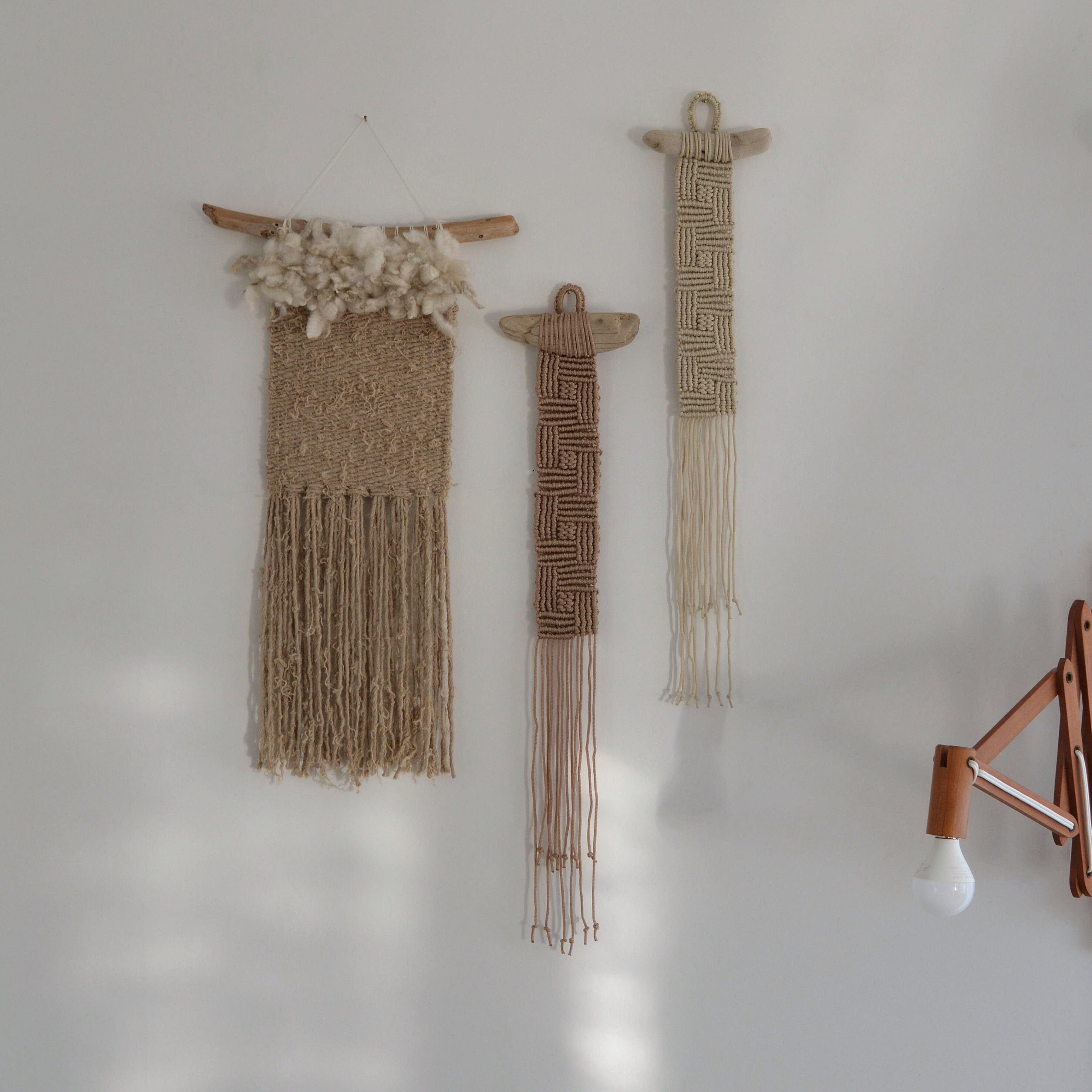 羊毛 羊毛タペストリー 流木 ウォールハンギング